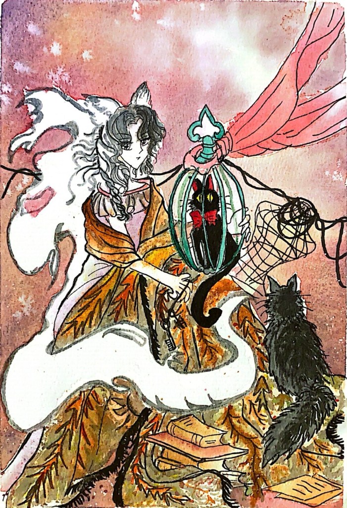 Neither satire nor fantasy, the metamorphosis unfolds as a moment of poise. The art work is inspired by Offenbach’s La Chatte Métamorphosée en Femme.
